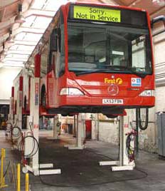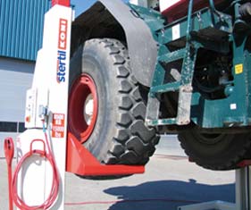 Cuenta con su propio sistema electro-hidráulico de levante, haciéndolo independiente del compresor del taller.